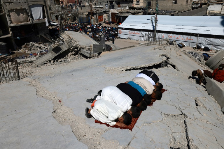 A Jérusalem, des dizaines de milliers de fidèles se sont réunis sans incident sur l'esplanade des Mosquées, sous haute surveillance policière, pendant qu'à Gaza, des habitants se rassemblaient pour prier au milieu des ruines.