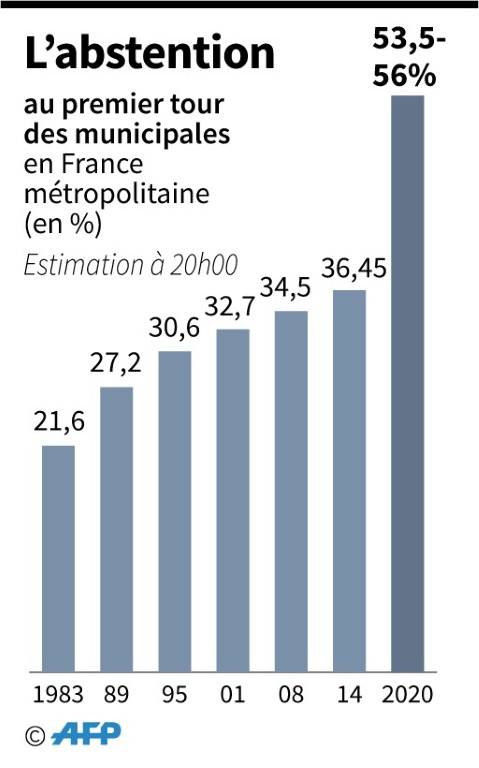 Parmi les quelque 47,7 millions d'électeurs appelés à élire leur maire dimanche, moins de la moitié aura effectivement glissé un bulletin dans l'urne, après que le gouvernement a décrété samedi soir la fermeture de tous les "lieux recevant du public non indispensables à la vie du pays". Un chiffre historique pour un scrutin généralement mobilisateur chez les Français.
