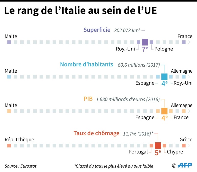 Baisse drastique des impôts, revenu de citoyenneté à 780 euros, soutien aux familles... le Mouvement 5 étoiles (M5S, antisystème) et la Ligue (extrême droite) misent sur la relance de la demande pour accélérer la croissance, et faire ainsi baisser l'énorme dette publique de 2.300 milliards d'euros. Un pari risqué, car ce surcroît de dépenses --même si ses défenseurs assurent qu'il sera en partie compensé par la lutte contre l'évasion fiscale et le gaspillage de fonds publics -- pourrait au contraire faire dérailler le déficit public, qui a atteint 2,3% en 2017 et devait descendre à 1,7% en 2018 et 2019.