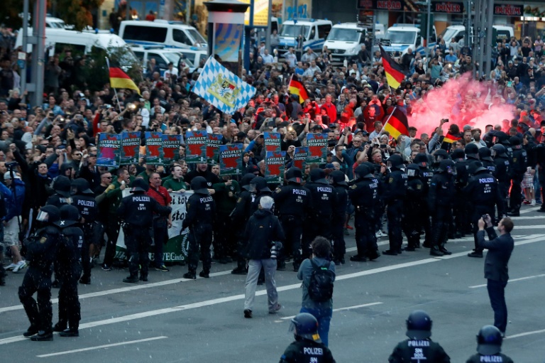 La mort d'un Allemand de 35 ans, instrumentalisée par des groupes d'extrême droite en quelques heures, avait conduit à des violences qui avaient choqué l'Allemagne, et à des "chasses à l'étranger" dénoncées par Angela Merkel. Par crainte de nouveaux dérapages, le procès ne se déroule pas à Chemnitz. Les mouvements extrémistes y restent bien implantés, à l'instar de ces hooligans du club local de 4e division impliqués dans les heurts en août, et qui doivent se rassembler lundi par centaines, selon l'agence de presse DPA, pour enterrer l'un des leurs.