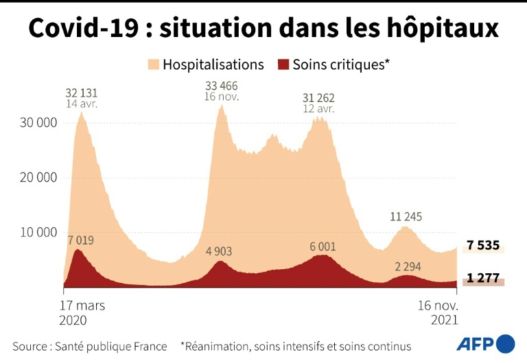 La France est à son tour frappée par la 5e vague de l'épidémie de Covid-19 mais le pays espÚre pouvoir la contenir et traverser l'hiver sans mesures supplémentaires grùce aux outils mis en place, au premier rang desquels la vaccination.