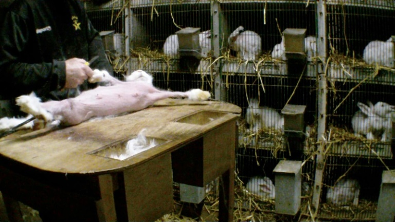 "Les lapins souffrent, ils crient, c'est inadmissible. Parfois la peau se déchire quand on les épile, tous les cent jours environ", a déclaré à l'AFP Muriel Arnal, présidente de One Voice.