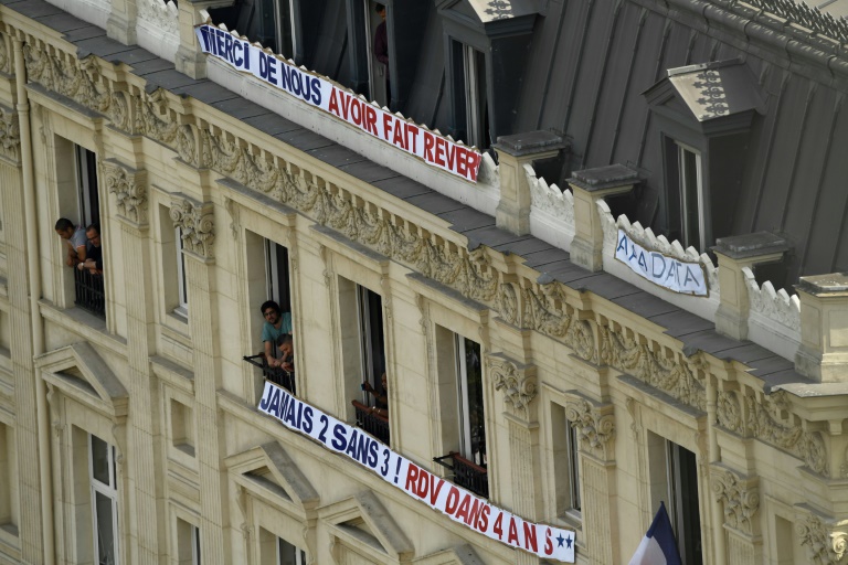 Les Bleus ont pris du retard, mais malgré la chaleur, certains s'en frottent les mains. Dans le jardin des Ambassadeurs, au pied de l'avenue, Abdel Mansour vend ses drapeaux et écharpes tricolores à tour de bras. "Le but, c'est de vider le stock", rit-il. "Franchement, la victoire ça fait du bien, surtout aprÚs avoir perdu l'Euro chez nous en 2016. On s'est bien rattrapé!"