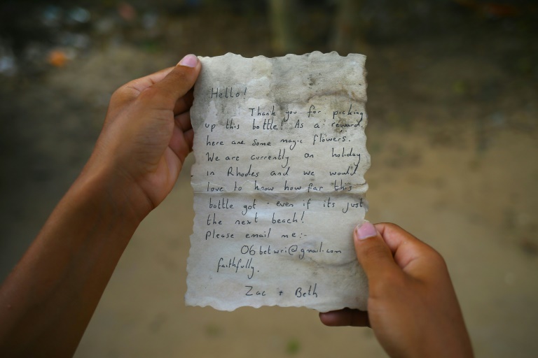 Une bouteille à la mer envoyée il y a deux mois par un couple britannique depuis l'île grecque de Rhodes a traversé la Méditerranée et échoué sur une plage de Gaza, a indiqué mardi le pêcheur palestinien qui l'a découvert.