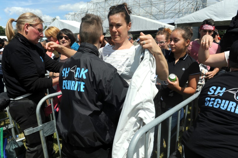 Sous un grand ciel bleu, les festivaliers se sont engagés le long de couloirs au bout desquels des agents de sécurité ont procédé à des fouilles corporelles et à l'inspection des sacs.