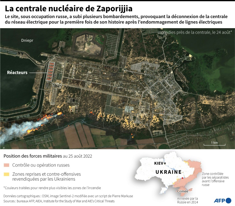 L'opérateur ukrainien Energoatom a mis en garde samedi contre des risques de fuites radioactives et d'incendie après de nouvelles frappes. Ces dernières semaines, Zaporijjia cristallise les inquiétudes des Occidentaux. L'ONU a appelé à cesser toute activité militaire aux alentours. Initialement, l'Ukraine craignait qu'une telle visite ne légitime l'occupation russe du site aux yeux de la communauté internationale avant de finalement soutenir l'idée d'une mission de l'AIEA.