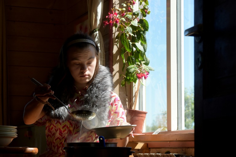 Les membres de la communauté accomplissent leurs tâches quotidiennes le matin avant de passer aux loisirs. Ce jour-là, ils répètent "Le Petit Prince" de Saint-Exupéry avec leur art-thérapeute, Irina Andreeva. "Ils sont très doués, chacun à leur manière", commente cette dernière en regardant Natacha, une jeune trisomique en train de danser.