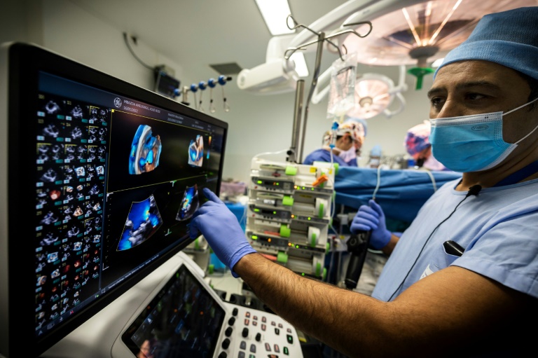 "Ici on regarde la valve qui a été réparée par le chirurgien avec les sutures qui ont été réalisées (...) On va juger le fonctionnement de la valve et la qualité de la réparation plus facilement en faisant l'écho 3D que l'écho bidimensionnelle classique", explique le Dr Hadeed, devant les images en mouvement.