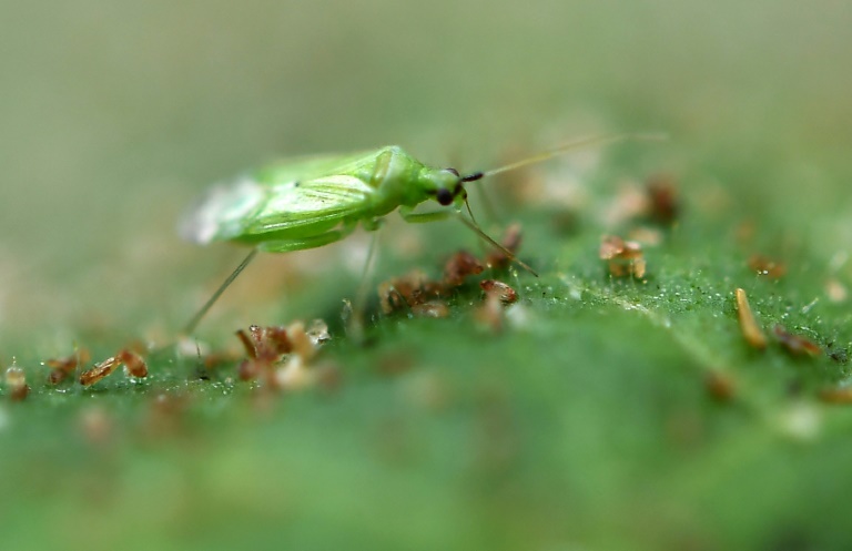 La petite guêpe noire et jaune encarsia pond ses oeufs dans les larves d'aleurodes, des petites mouches blanches avides de sève et de plus en plus résistantes aux pesticides, dont elle se nourrit de l'intérieur provoquant leur mort. Eretmocerus s'attaque aussi aux mouches blanches mais à un stade un peu plus tardif, tout comme macrolophus qui mange cependant également des pucerons, des oeufs de chenille ou même des petites chenilles.