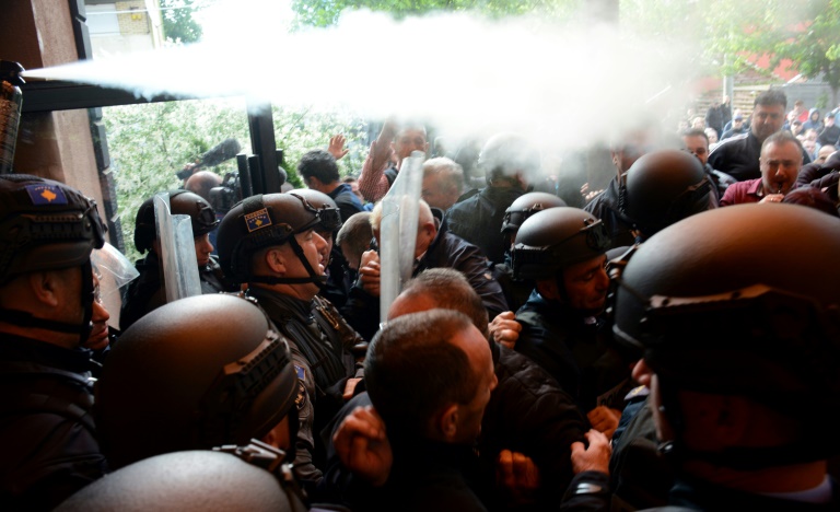 Les soldats de la KFOR, munis de boucliers et de bâtons, ont initialement tenté de séparer les deux parties avant de commencer à disperser la foule, a rapporté une journaliste de l'AFP.
