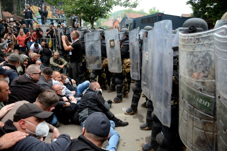 Les protestataires serbes, qui se sont notamment rassemblés devant la mairie de Zvecan, réclament le retrait des édiles albanais mais aussi des forces de police du Kosovo, auxquelles ils se sont heurtés.
