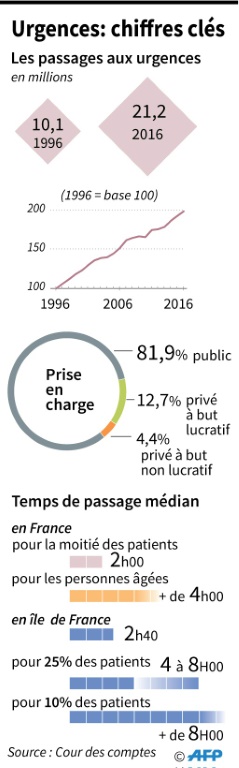 En réalité, la surcharge est devenue la norme: le nombre de patients pris en charge aux urgences est passé de 10 millions en 1996 à 21 millions en 2016, un record sans doute dépassé depuis. "On a doublé notre activité, mais on n'a pas doublé nos moyens", observe Tarak Mokni, responsable du Samu de Bayonne (Pyrénées-Atlantiques).