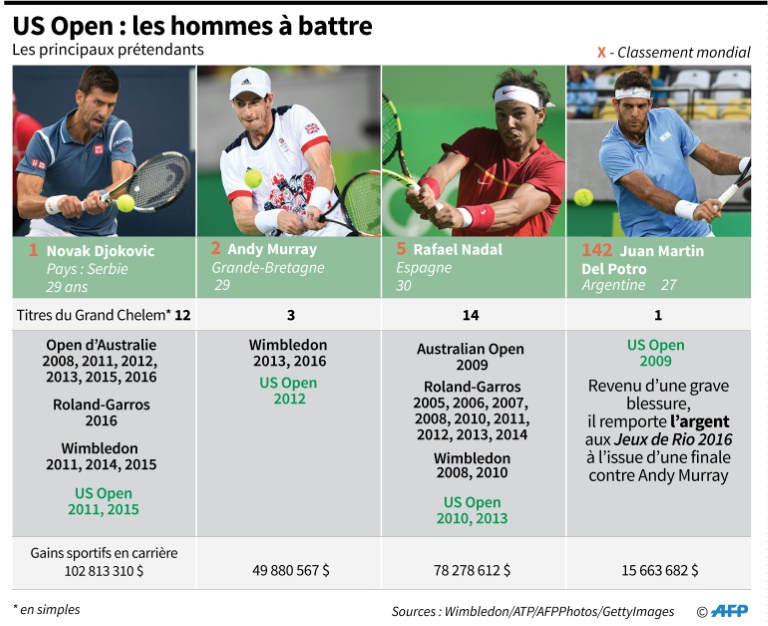 L'Allemande Angelique Kerber, lauréate de l'Open d'Australie en janvier et N.2 mondiale, l'Espagnole Garbine Muguruza, sacrée à Roland Garros, ou encore la Polonaise Agnieszka Radwanska, auréolée de son succès samedi à New Haven, sont aux aguets.