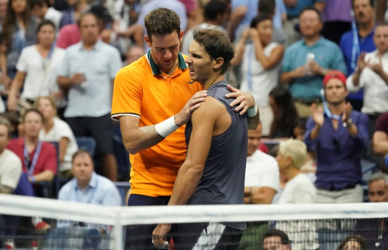 L'un à genoux, l'autre aux anges : trahi une fois de plus par son articulation vendredi, Rafael Nadal permet à Juan Martin Del Potro, longtemps martyrisé par ses poignets, de renouer avec la finale de l'US Open, théâtre de son unique sacre en Grand Chelem il y a neuf ans. Strappé à deux reprises sous le genou droit, une fois dans le premier set, une autre dans le second, le visage grimaçant, l'Espagnol, N.1 mondial et vainqueur sortant, a renoncé une fois mené deux manches à zéro (7-6 (7/3), 6-2) après deux heures de match.
