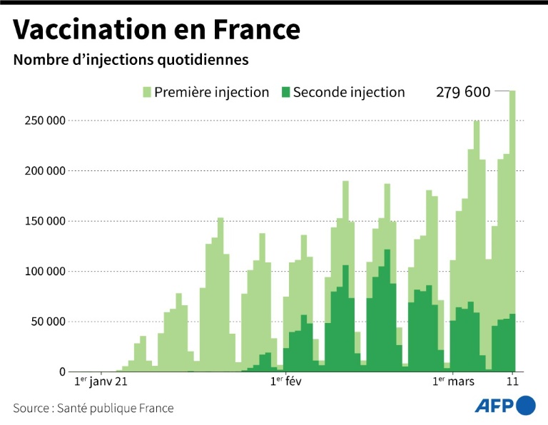 "On s'est fixé l'objectif de 10 millions de vaccinations au 15 avril et je ne désespère pas qu'on le dépasse. Mais il faut être prudent car les labos nous font quelques misères dans le respect de délais de livraison. Il faut s'adapter", a-t-il poursuivi, alors qu'AstraZeneca vient d'annoncer de nouveaux retards.