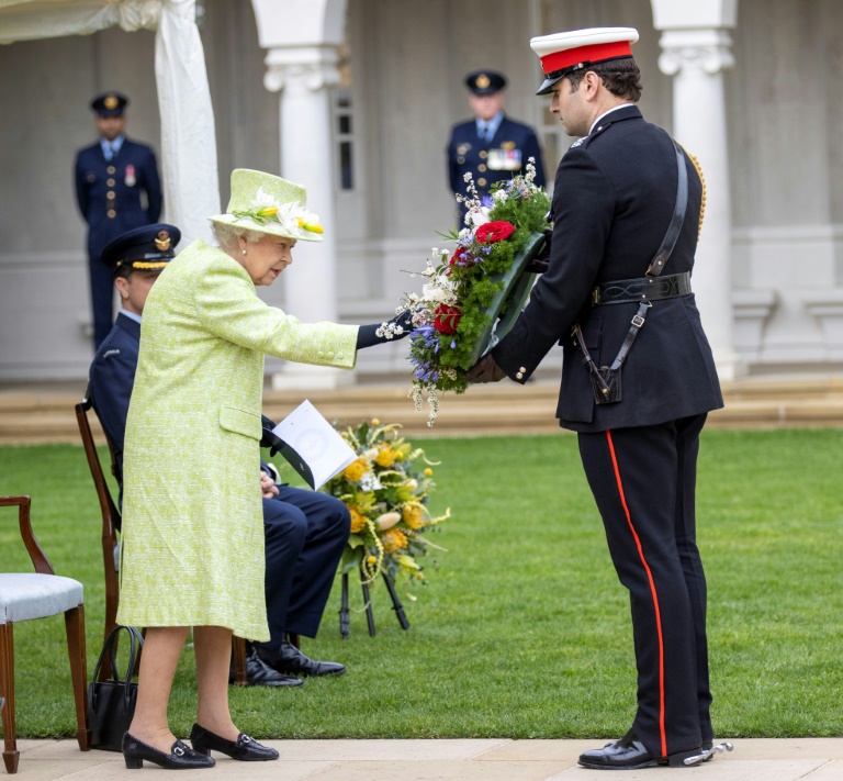 Non masquée, la monarque a marqué le centenaire de l'armée de l'air australienne, pays dont elle est la souveraine, en visitant un mémorial militaire dans le sud de l'Angleterre.