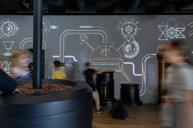 A l'intérieur du musée, les visiteurs s'arrêtent devant une maquette de l'usine faite exclusivement de chocolat et peuvent suivre en temps réel la chaîne de production. De l'autre côté d'une paroi de verre séparant le musée de l'usine, des ouvriers remuent des chaudrons géants remplis d'une pâte au sésame qui sera bientôt transformée en barres de "chalwa", une friandise très appréciée en Pologne.