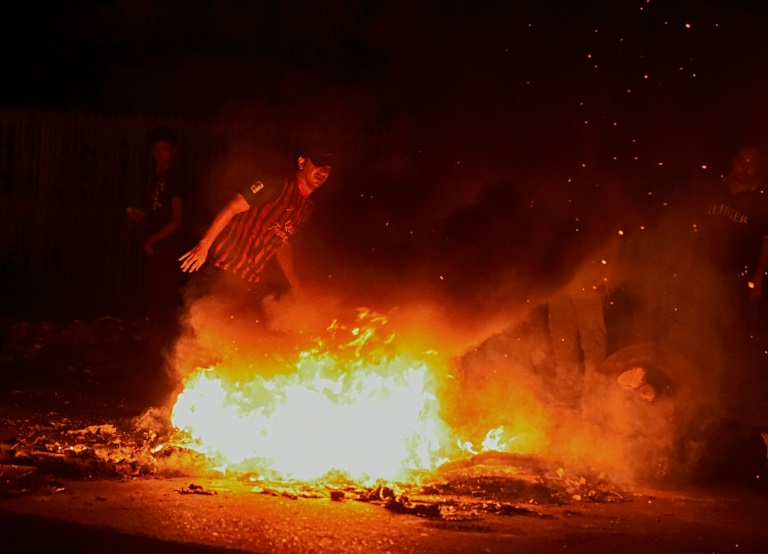 Des pneus brûlés et des barrages routiers étaient visibles dans la ville jeudi soir.