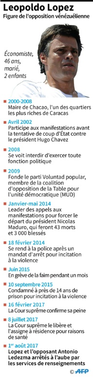Leopoldo Lopez, 46 ans, fondateur du parti Voluntad Popular (VolontĂ© populaire, droite), et le maire de Caracas Antonio Ledezma, 62 ans, ont Ă©tĂ© arrĂȘtĂ©s en pleine nuit chez eux, selon des vidĂ©os relayĂ©es sur internet. Tous deux avaient dĂ©jĂ Ă©tĂ© emprisonnĂ©s et avaient rĂ©cemment Ă©tĂ© assignĂ©s Ă rĂ©sidence.