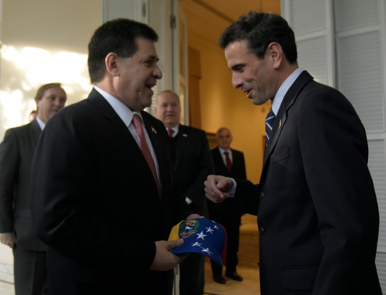 "Le Venezuela vit la pire crise de son histoire (...) Ne nous laissez pas seuls", a lancé M. Capriles à Asuncion, après avoir été reçu par le président paraguayen Horacio Cartès, un allié de l'opposition vénézuélienne.