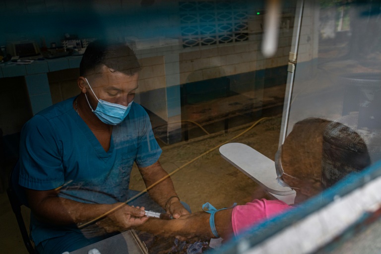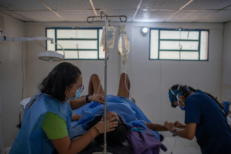 Sous un auvent, une jeune indigène vénézuélienne de 17 ans, yeux cernés, allongée dans un hamac usé et sale, regarde son bébé dans les bras de l'infirmière du village. Elle vient d'accoucher à même le sol. Comme ailleurs dans l'Etat de Bolivar (sud-est), dans l'Amazonie vénézuélienne, les 270 habitants du village de Chaviripa -- dont 180 indigènes Eñepa -- vivent dans une extrême pauvreté et un immense désert médical.