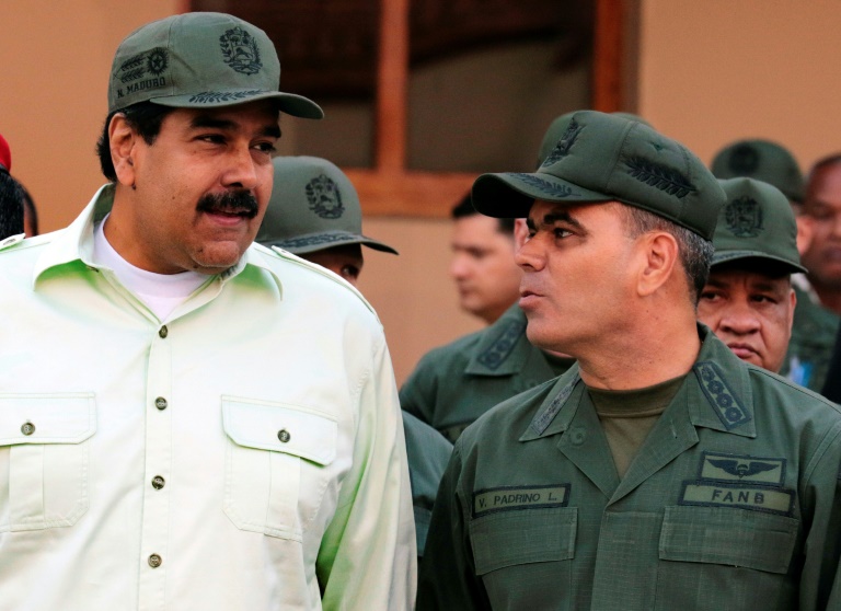 Les deux hommes recherchĂ©s ont Ă©tĂ© qualifiĂ©s "d'ennemis de la nation" par le gĂ©nĂ©ral Padrino dans une vidĂ©o oĂč il est apparu devant trois tanks pointant leurs canons vers le ciel, un vĂ©hicule blindĂ© et des soldats en armes.