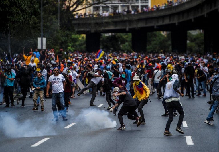 Les échauffourées ont débuté quand le cortège d'environ 10.000 personnes, rassemblé sur l'autoroute principale de la ville, a tenté de se diriger vers le centre de Caracas, avant d'être bloqué par une barrière installée par l'armée.
