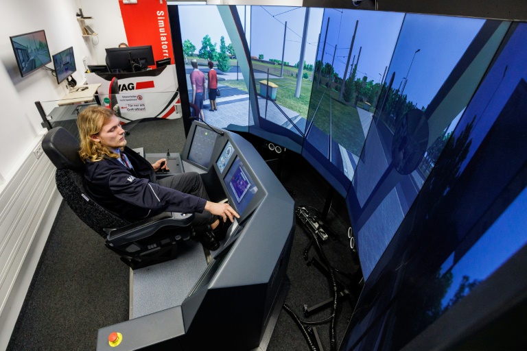 "C'est un super sentiment d'avoir tous ces wagons derrière soi", confie le garçon aux yeux bleus et cheveux mi-longs, comme ramené à des rêves d'enfant sur les rails du centre de formation de la société de transport de Nuremberg (VAG).