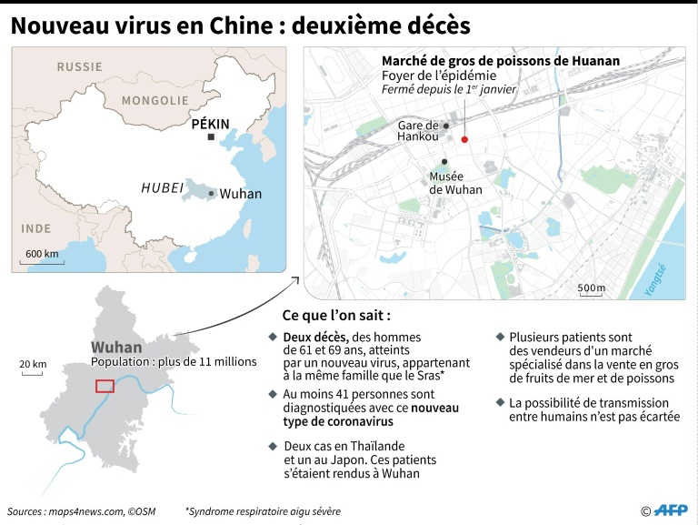 Le virus suscite des inquiétudes croissantes après le décès mercredi en Chine d'un second patient, un homme de 69 ans, tombé malade le 31 décembre et qui a vu son état de santé s'aggraver cinq jours plus tard.