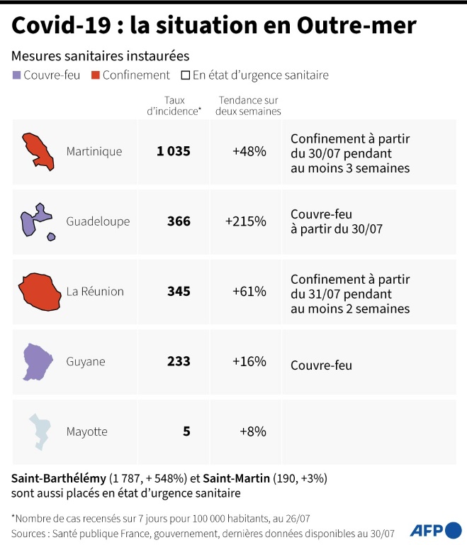 Cette progression de la pandémie inquiète aussi en France, où le variant Delta flambe sur les lieux de vacances, mais aussi et surtout en Outre-mer.