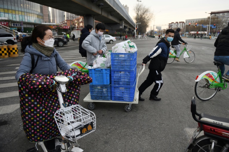 Outre les repas, les foyers se font livrer leurs courses, de l'épicerie aux produits d'hygiène. Le géant du commerce en ligne JD.com a vu ses ventes de produits frais bondir de 215% durant le congé du Nouvel An chinois, lorsqu'a éclaté la crise: riz et produits laitiers sont très demandés, les désinfectants également.