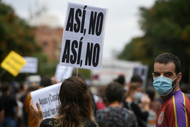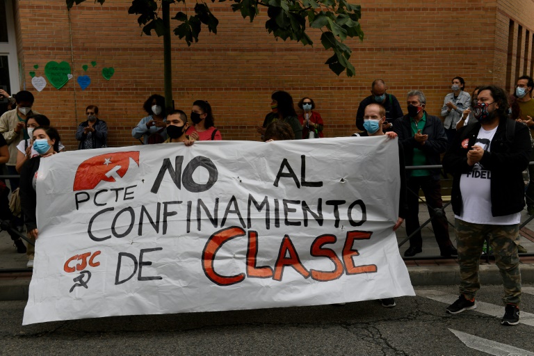 Plusieurs centaines de personnes ont manifesté contre ces nouvelles mesures à la mi-journée dans les quartiers concernés et devant le parlement régional, à l'appel d'organisations d'extrême-gauche notamment. "Non au confinement de classe", "Ils détruisent notre quartier et maintenant ils nous enferment", pouvait-on lire sur les pancartes. "Les centres de santé travaillent depuis des années avec un effectif minimum, ils n'ont pas assez de médecins et d'infirmières (...) et cette crise a encore aggravé la situation", regrettait Victoria, une fonctionnaire de 63 ans.