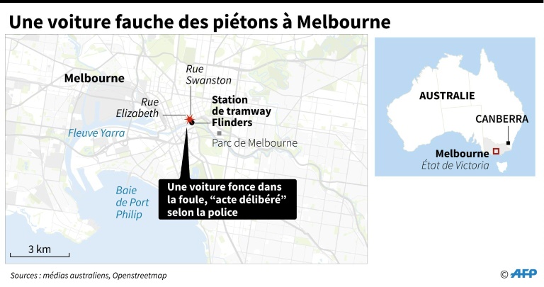"Quelle qu'en soit la motivation, c'était un acte odieux et lâche, mais je souhaite rassurer tous les Australiens sur le fait qu'il s'agit d'un incident isolé", a encore déclaré M. Turnbull. "Nous devons poursuivre le cours normal de notre vie quotidienne", a ajouté le chef du gouvernement, en exhortant ses compatriotes à continuer à se rendre dans les espaces publics. L'attaque est survenue sur Flinders Street, une artère qui traverse le coeur de la capitale de l'Etat de Victoria, parallèlement au fleuve Yarra.