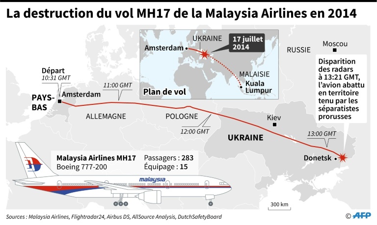 L'équipe internationale d'enquêteurs a établi en 2018 que l'avion avait été abattu par un missile russe au-dessus de la zone de conflit armé avec les séparatistes pro-russes dans l'Est de l'Ukraine, mais Moscou a toujours nié avec véhémence toute implication dans le crash.