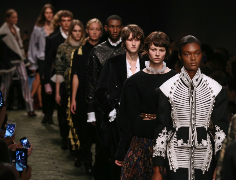 Le poids lourd de la mode britannique Burberry a puisé son inspiration dans le roman "Orlando" de Virginia Woolf avec des manteaux à reliefs et des hauts en tulle à col fraise.