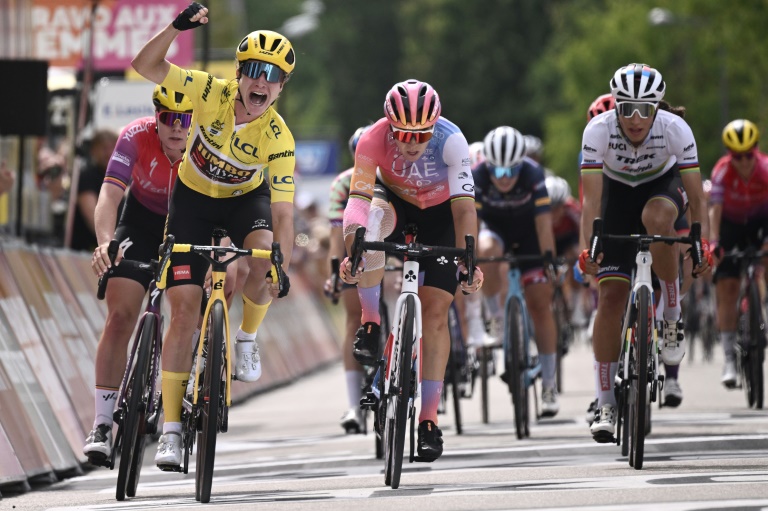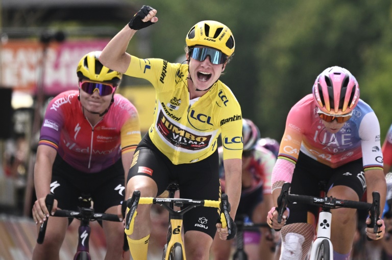 La légende Oranje a réglé au sprint un petit groupe où ne figurait pas la reine des arrivées massives, Lorena Wiebes, victorieuse la veille mais retardée dans une chute vendredi.