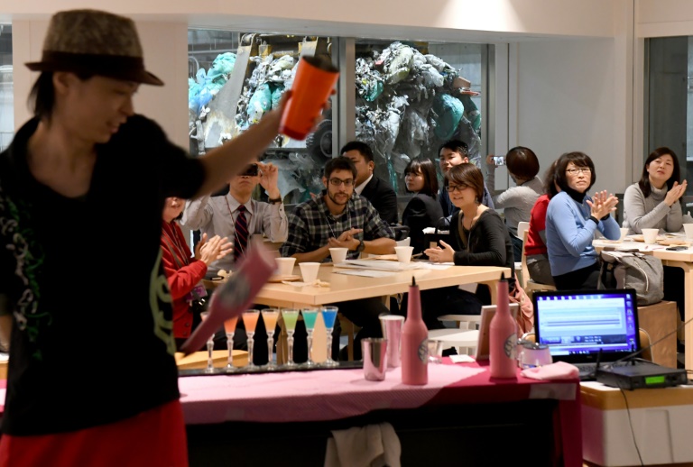 De jeunes Japonais attablés dans un café s'amusent à se prendre en selfie. Derrière eux, de l'autre côté d'une large baie vitrée, une vue plongeante sur un monceau d'ordures dans lequel s'enfonce une griffe mécanique. Ils ont choisi pour décompresser autour d'un verre le vendredi soir un lieu bien inhabituel: une usine de traitement des déchets équipée d'un incinérateur.