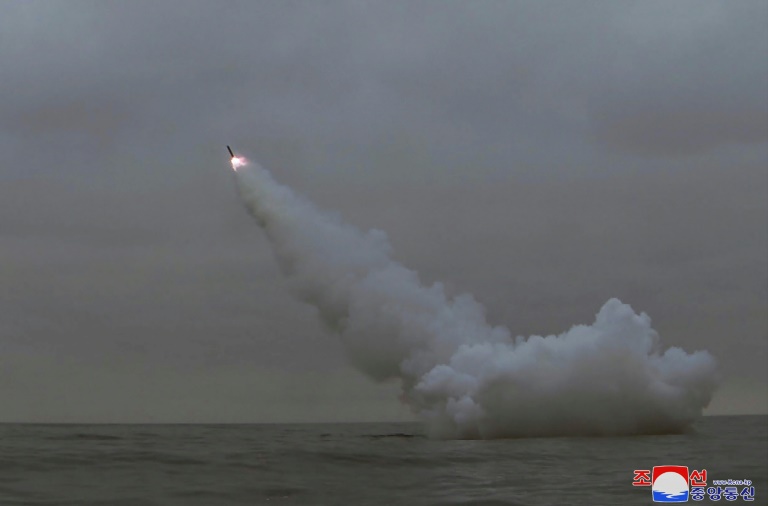 Des images diffusées sur les médias d'Etat nord-coréens montrent un sous-marin, le "8.24 Yongung", un missile s'élançant vers le ciel, ainsi que de la fumée blanche et des flammes.
