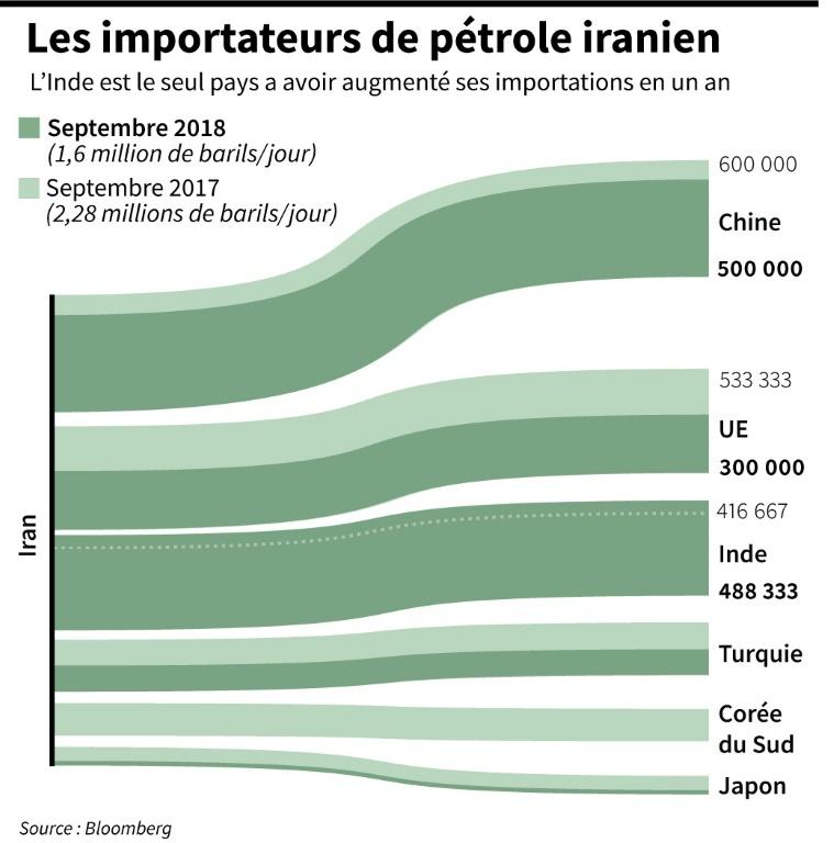 Huit pays bénéficieront toutefois de dérogations et seront autorisés temporairement à continuer d'acheter du pétrole iranien, "mais uniquement car ils ont fait preuve d'efforts importants pour ramener leurs importations de brut vers zéro", a annoncé vendredi le chef de la diplomatie américaine Mike Pompeo.