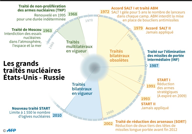 Selon Eugene Rumer, ancien membre du renseignement américain aujourd'hui expert au cercle de réflexion Carnegie Endowment for International Peace, "ni l'administration Trump ni le gouvernement russe ne semblent être intéressés par la sauvegarde" de ce traité signé à la fin de la Guerre froide par le dernier dirigeant soviétique, Mikhaïl Gorbatchev, et le président américain de l'époque, Ronald Reagan.