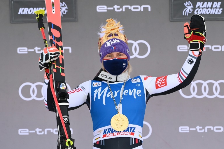 La Française a devancé la Suissesse Lara Gut-Behrami (2e à 27/100e) et la grande favorite du jour, l'Italienne Marta Bassino, 3e à 73/100e, qui devra donc patienter un peu pour décrocher une cinquième victoire cette saison en géant.