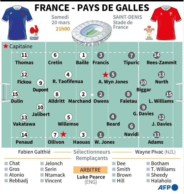 La sélection galloise dispose aussi d'une dose de sang neuf, avec la pépite Louis Rees-Zammit (20 ans), co-meilleur marqueur d'essais (quatre à égalité avec l'Anglais Anthony Watson), qui brille de mille feux sur son aile. "Il faudra être très compétitifs samedi", a souligné Galthié. Et réussir un gros coup pour survivre.