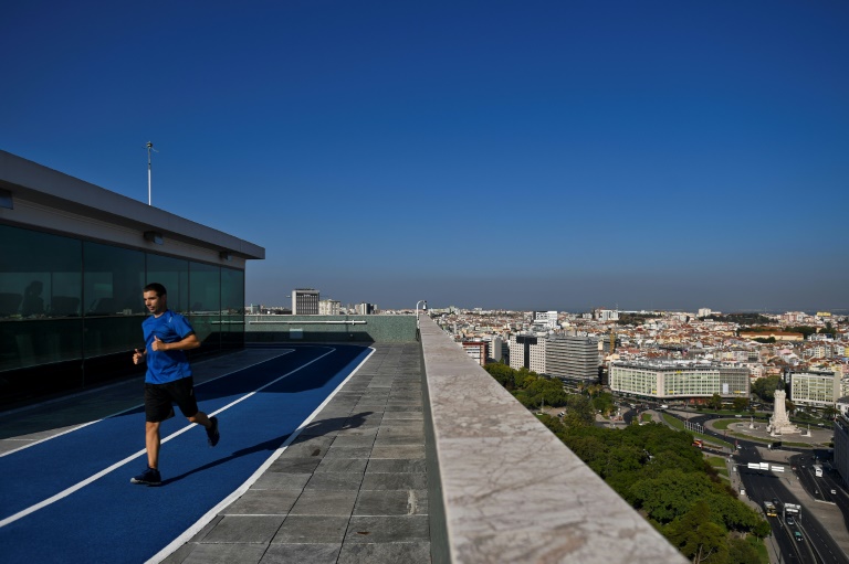 Au dixième et dernier étage d'un des bâtiments les plus hauts de Lisbonne, les clients de l'hôtel de luxe Ritz Four Seasons disposent, depuis la rénovation réalisée en 2016, d'une piste en tartan bleu pour faire du jogging avec une vue à 360 degrés sur la ville, qui s'étend du fleuve au parc forestier de Monsanto.