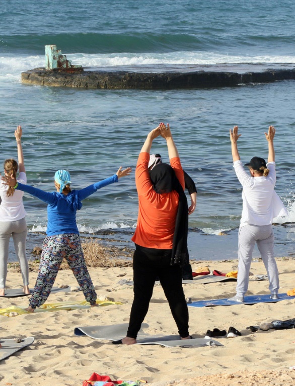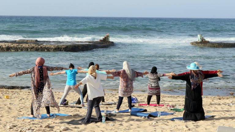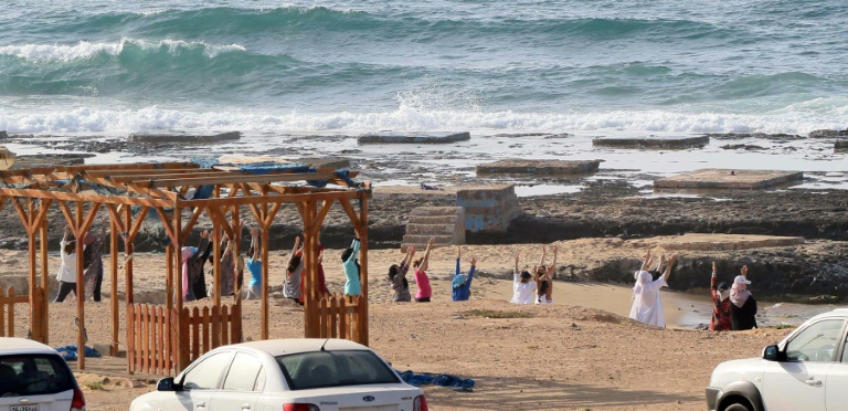 Tapis enroulé sous le bras, des Libyennes marchent chaque jeudi jusqu'à la plage de Tripoli pour une séance de yoga en bord de mer, échappant quelques heures durant au poids de la société et de six années de tensions.