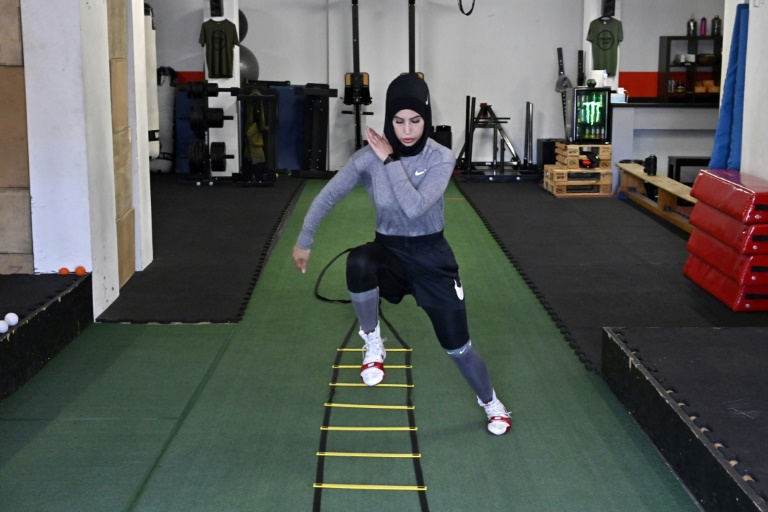 Le visage délicatement maquillé, encadré par un voile fleuri aux couleurs pastel qui dissimule ses cheveux, des lunettes de soleil relevées sur le haut du crâne, la Berlinoise de 21 ans affiche clairement ses ambitions. Les jeux Olympiques de Tokyo l'an prochain puis ceux de Paris en 2024 "sont mon grand rêve, mon grand objectif", sourit-elle entre deux entraînements.