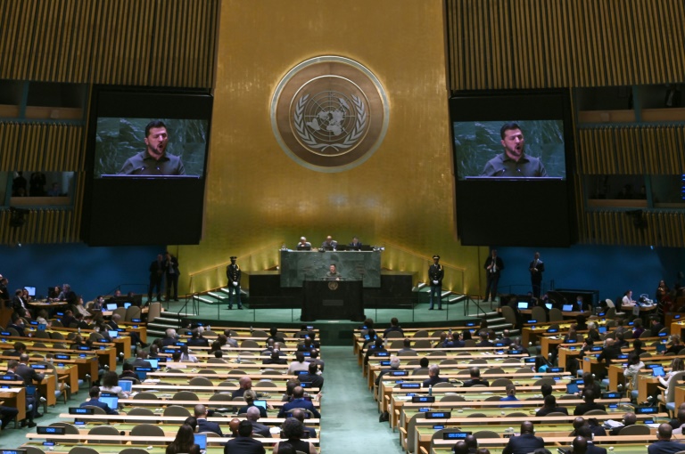 S'adressant mardi à la tribune de l'Assemblée générale, M. Zelensky, habillé comme de coutume en treillis militaire, a accusé la Russie de commettre un "génocide" en Ukraine, s'efforçant de rallier à sa cause des pays du Sud parfois sceptiques en leur disant qu'ils avaient eux aussi intérêt en la victoire de Kiev.