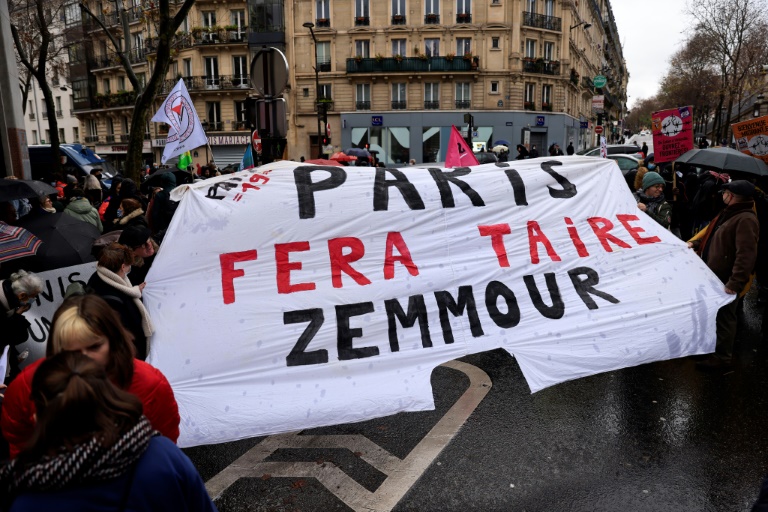 A Paris, quelques centaines de personnes se sont rassemblées dans le calme pour dénoncer la candidature et le discours à leurs yeux "raciste" d'Eric Zemmour, à l'appel d'une cinquantaine de syndicats, partis et associations.