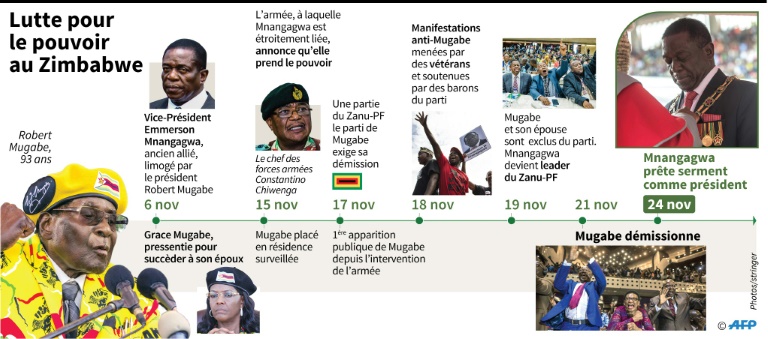 Les militaires ont pris le contrôle du pays dans la nuit du 14 au 15 novembre pour s'opposer à l'éviction du vice-président d'alors Emmerson Mnangagwa, qui barrait la route à Grace Mugabe pour la succession de son mari, âgé de 93 ans.