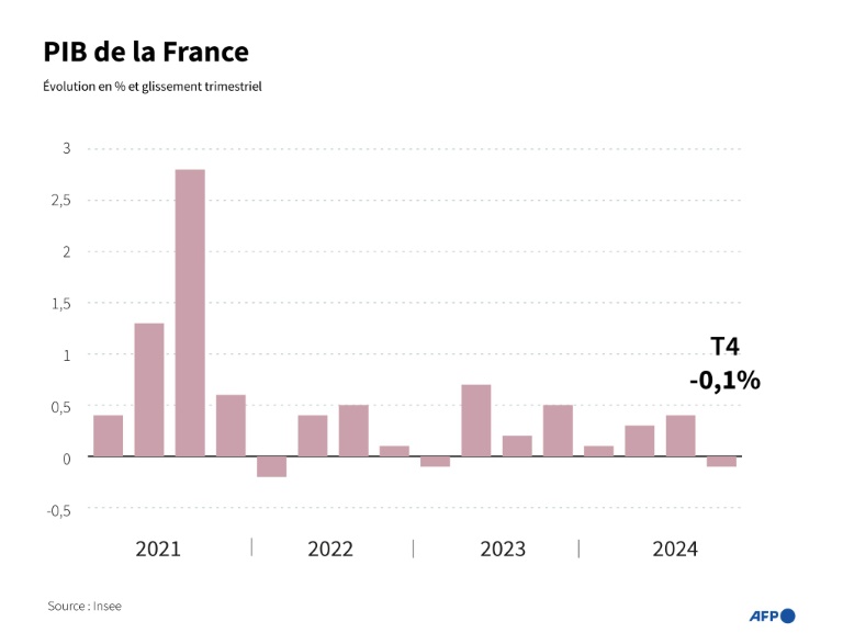 Au dernier trimestre, le PIB français a cependant reculé de 0,1% par rapport au trimestre précédent, rejoignant l'Allemagne en territoire négatif.