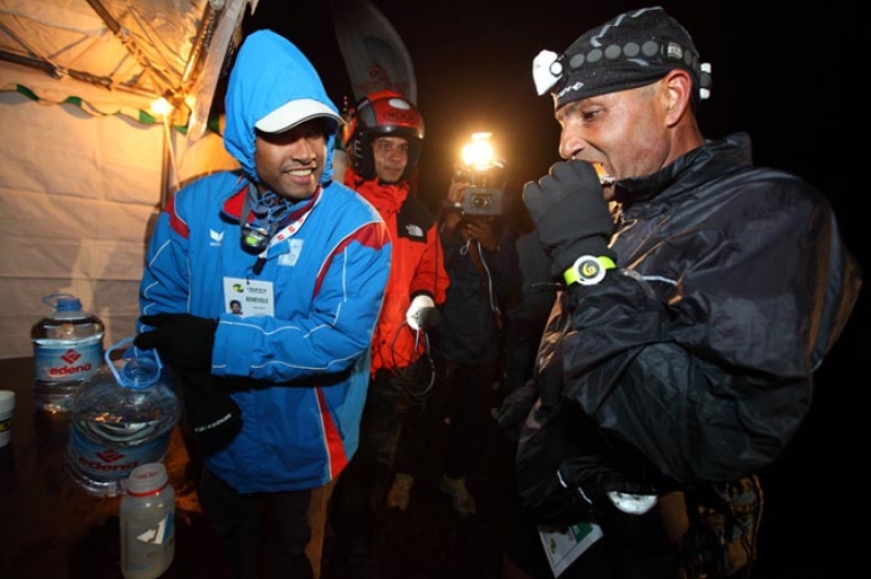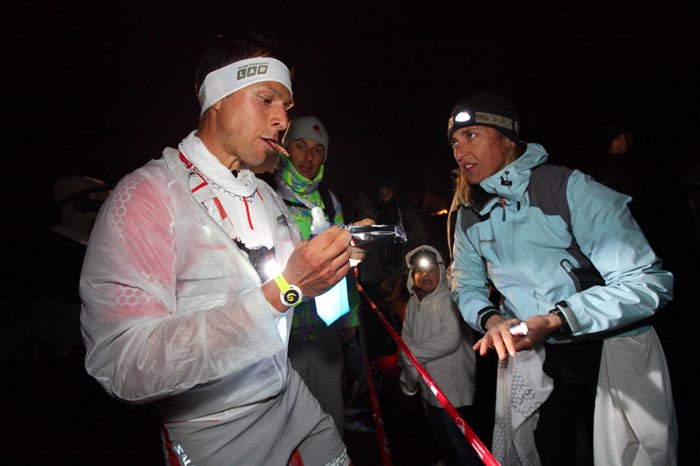 Julien Chorier, vainqueur en 2009, et Pascal Blanc sont toujours en tête de l'édition 2011 du Grand raid. Ils sont arrivés ensemble au volcan à 1 heure 32 ce vendredi 14 octobre 2011. Freddy Thévenin occupe la troisième place à trois minutes des deux premiers. La première féminine, Liliane Cleret, a pointé à 2 heures 26. À noter que Sébastien Chaigneau qui comptait parmi les favoris a abandonné la course sur blessure